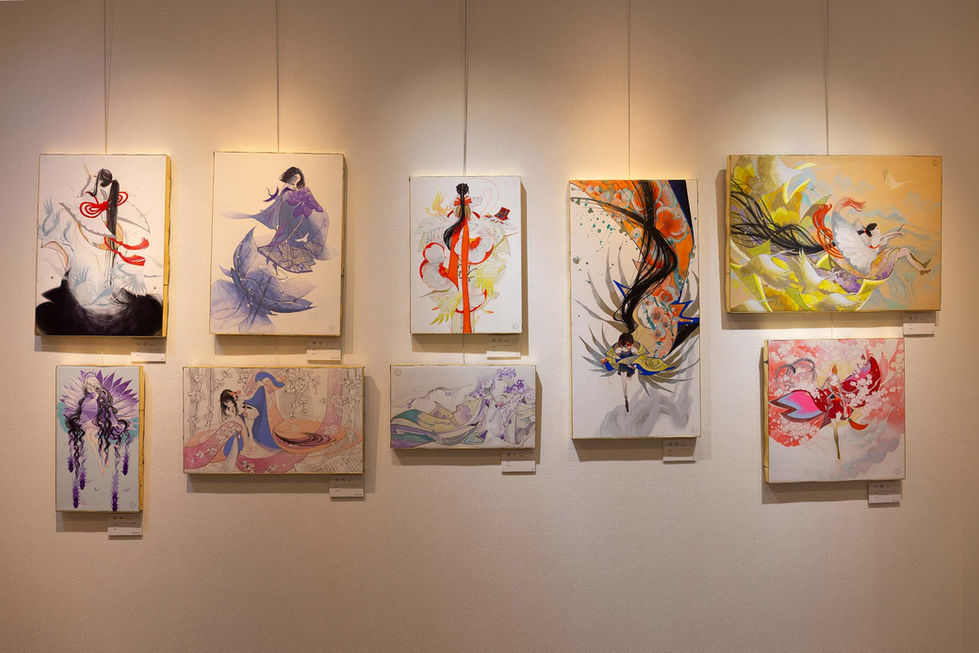 “陰陽の鳥”をテーマに和装少女を描いた新作と旧作を飾った個展「いちわ」を開催いたしました。